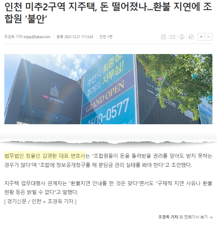 ÀÎõÀÇ ÇÑ Áö¿ªÁÖÅÃÁ¶ÇÕÀÌ Å»Å𸦠¿øÇÏ´Â Á¶ÇÕ¿øµé¿¡°Ô ºÐ´ã±Ý ȯºÒÀ» ¾à¼ÓÇßÀ¸³ª(°æ±â½Å¹® 9¿ù 3ÀÏ 1¸é º¸µµ) Áö±ÞÀÌ ´Ê¾îÁ® ³í¶õÀÌ Àϰí ÀÖ´Ù.