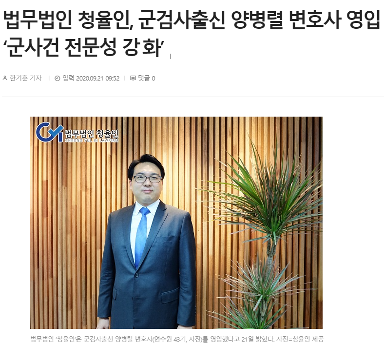 [ºñÁî¿ùµå] ¹ý¹«¹ýÀÎ ¡®Ã»À²ÀΡ¯Àº ±º°Ë»çÃâ½Å ¾çº´·Ä º¯È£»ç(¿¬¼ö¿ø 43±â)¸¦ ¿µÀÔÇß´Ù°í 21ÀÏ ¹àÇû´Ù.